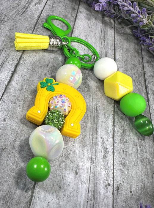 Handmade Beaded St Patricks horseshoe Keychain With Clip and Keyring