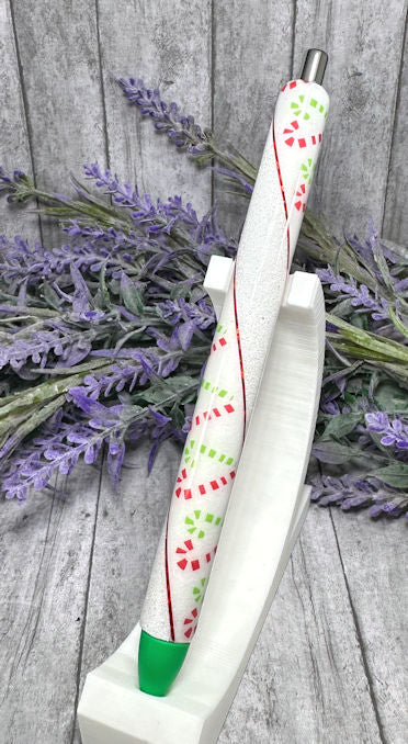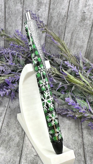 Handmade Green Plaid Snowflakes Christmas on silver glitter pen with free refill