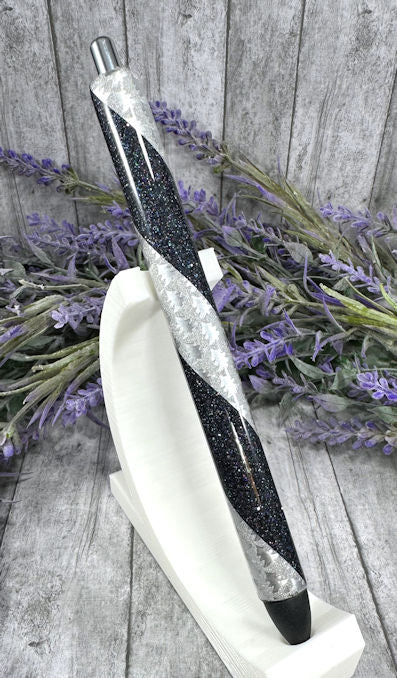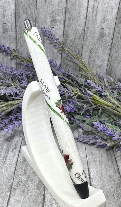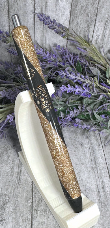 Handmade Merry Christmas Black and Gold glitter pen with free refill