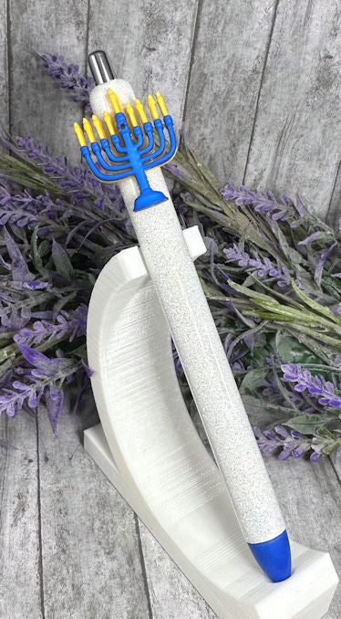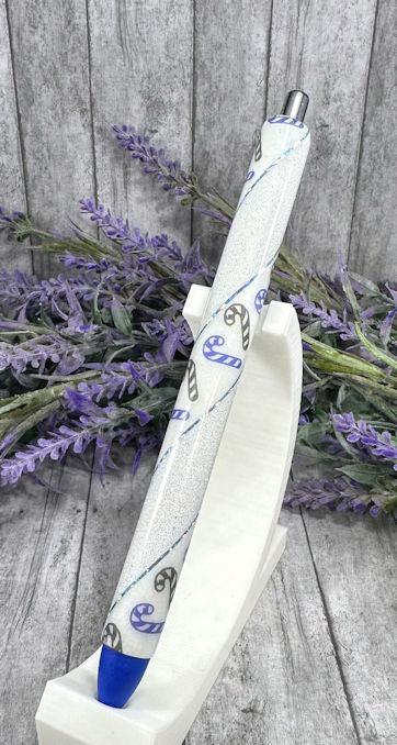 Handmade Christmas Blue and Silver Candy Canes glitter pen with free refill