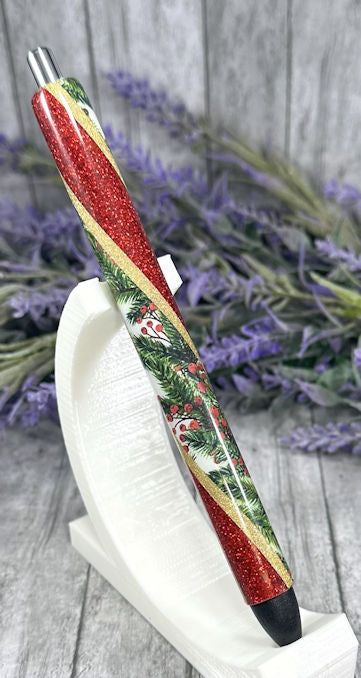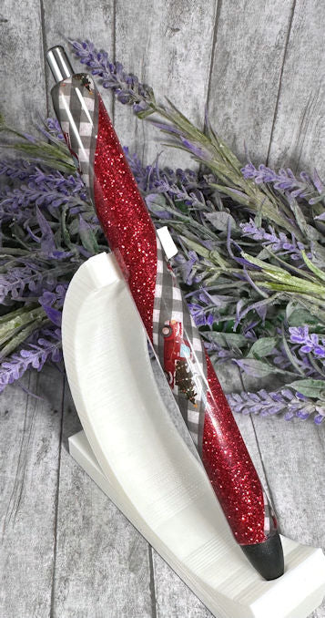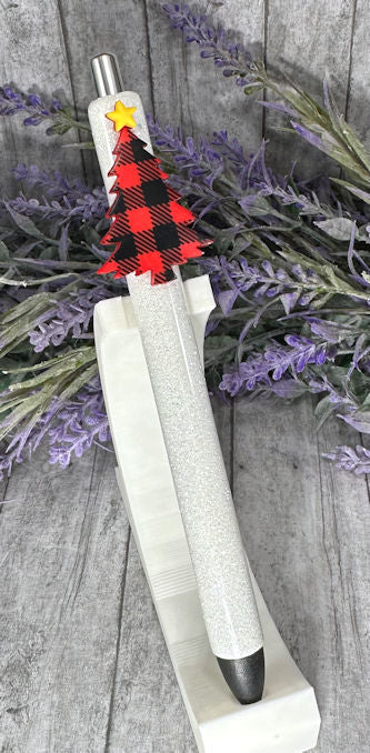 Handmade Red Plaid Christmas Tree glitter pen with free refill