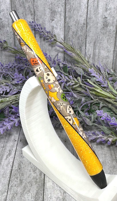 Handmade Fun Halloween on yellow glitter pen with free refill