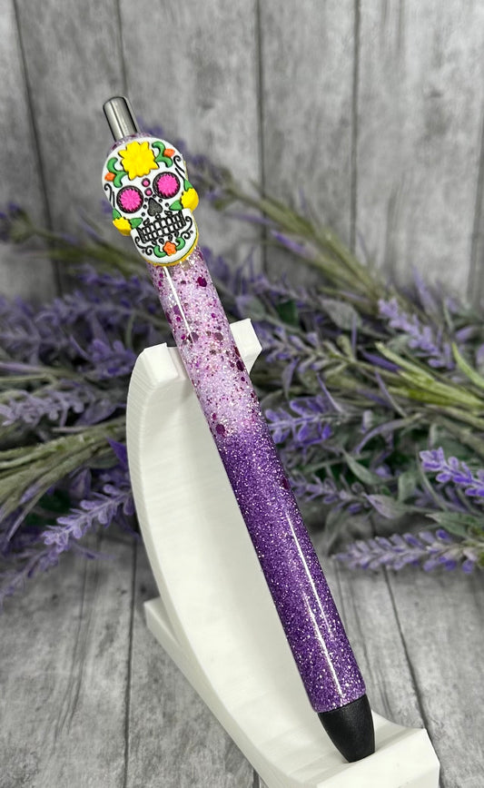 Handmade Halloween Sugar Skill on purple glitter pen with free refill