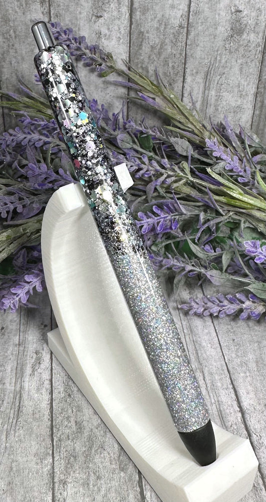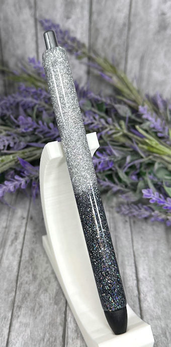 Handmade Ombre Charcoal Silver glitter pen with free refill