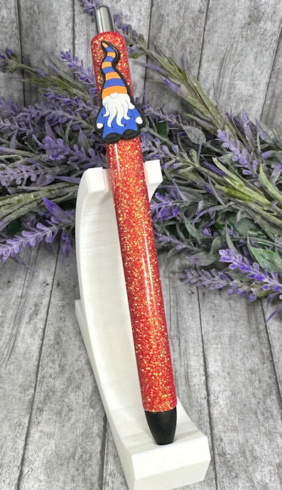 Handmade Halloween Gnome on orange pen with free refill