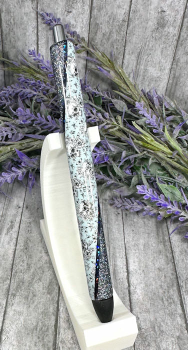 Handmade Chunky Charcoal Silver glitter pen with free refill
