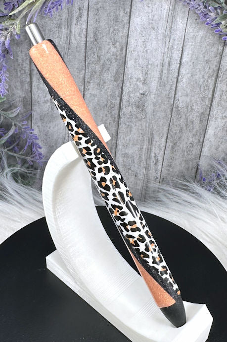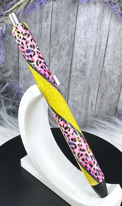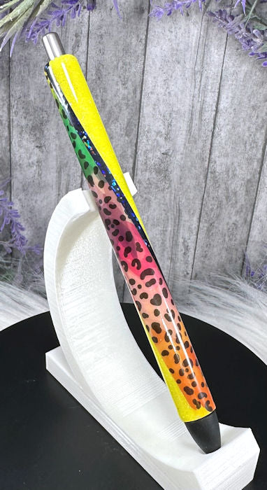 Handmade Rainbow leopard cougar print glitter pen with free refill