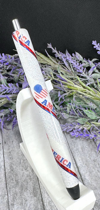 Handmade America patriotic Washi Tape glitter pen with free refill