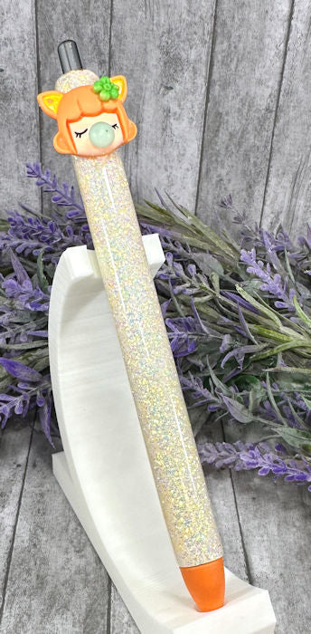Handmade Orange Kawaii Bubblegum Girl glitter pen with free refill