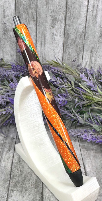 Handmade Baby Yoda Halloween glitter pen with free refill
