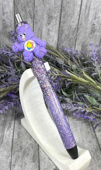 Handmade Purple Care Bear glitter pen with free refill