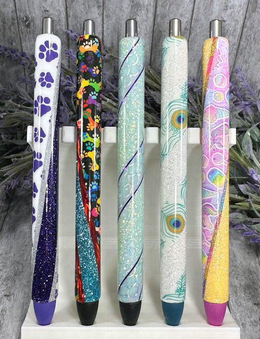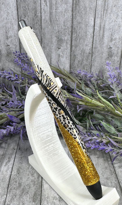 Handmade Leopard and Zebra animal print glitter pen with free refill