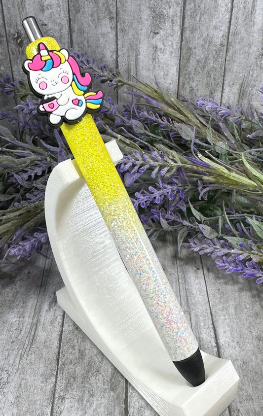 Handmade Yellow and White Baby Unicorn glitter pen with free refill