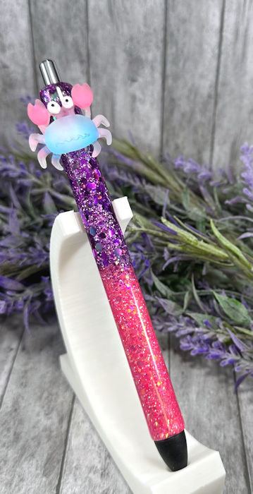 Handmade Purple and Pink Crab glitter pen with free refill
