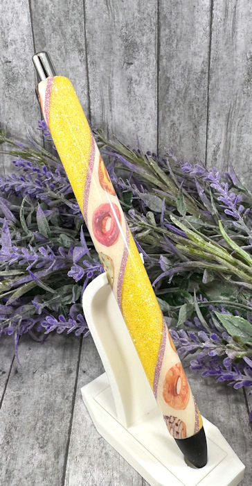 Handmade Donuts on yellow glitter pen with free refill