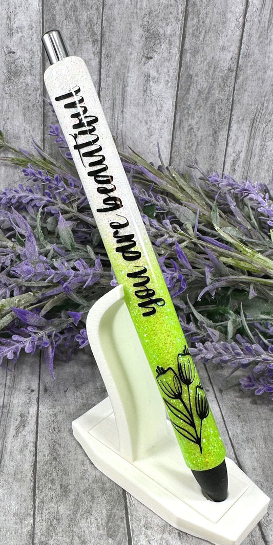 Handmade You Are beautiful bright green ombre glitter pen with free refill