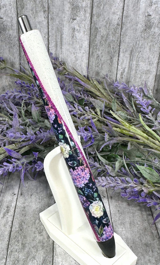 Handmade Black and Purple flowers glitter pen with free refill