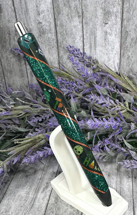 Handmade Halloween Washi Tape on green glitter pen set with free refills