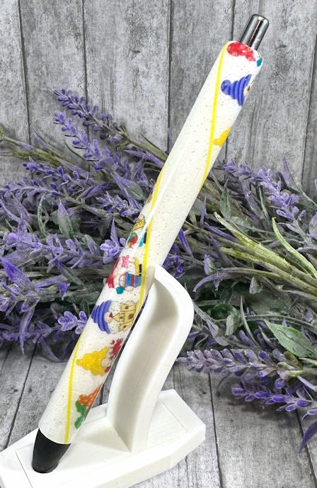 Handmade Gnome Beach glitter pen with free refill