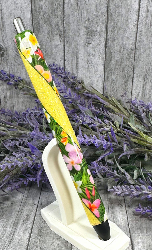 Handmade Flowers on yellow glitter pen with free refill