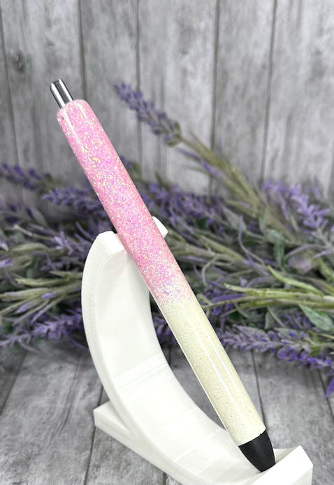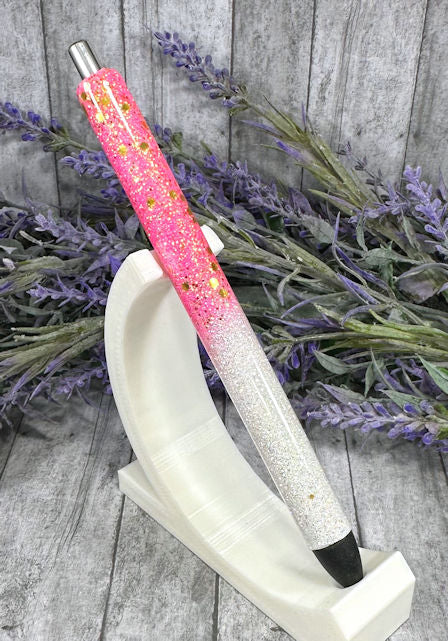 Handmade Bright Pink with Gold and White Ombre glitter pen with free refill