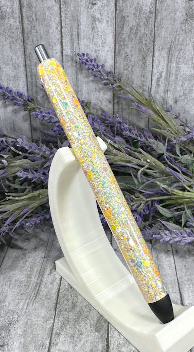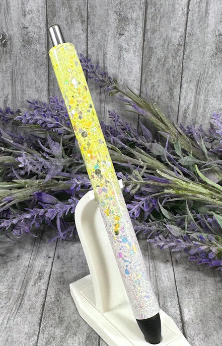 Handmade Yellow and Opal White ombre glitter pen with free refill