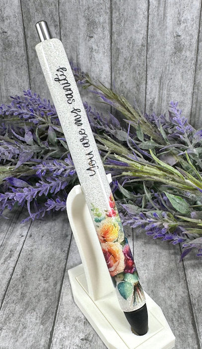 Handmade Fearless and Brave Flowers glitter pen with free refill