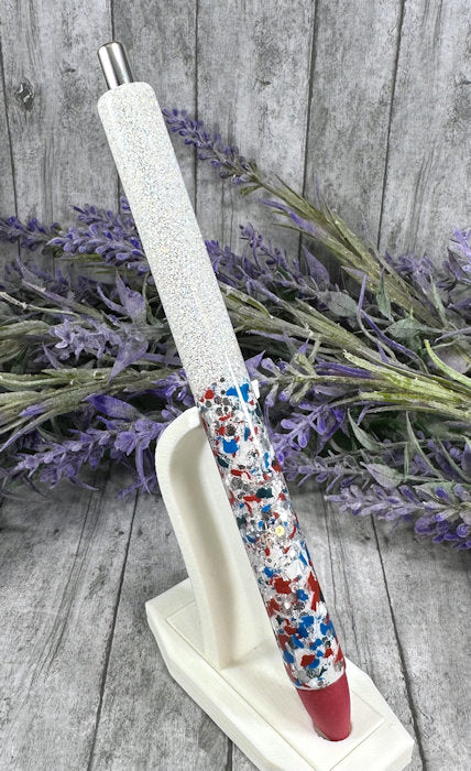Handmade Red White and Blue Patriotic Ombre glitter pen with free refill 2