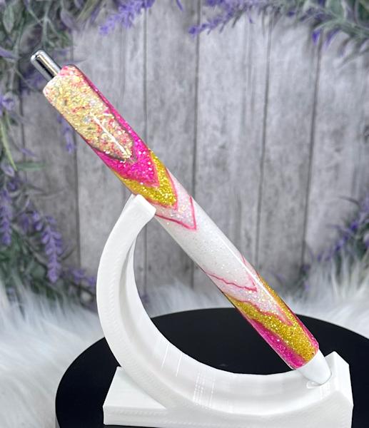 Handmade Pink and Gold Geode design glitter pen with free refill