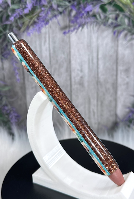 Handmade Gold and Browns Geode design glitter pen with free refill