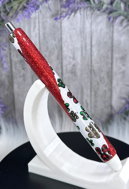 Handmade Christmas Dog Paws on red glitter pen with free refill