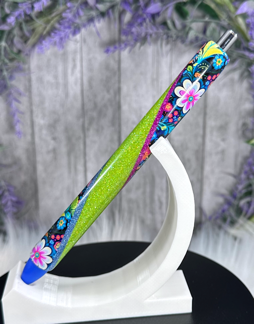 Handmade Colorful FLowers on Bright Green glitter pen with free refill