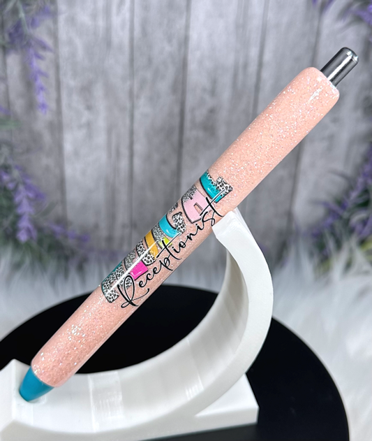 Handmade Medical Receptionist on peach glitter pen with free refill