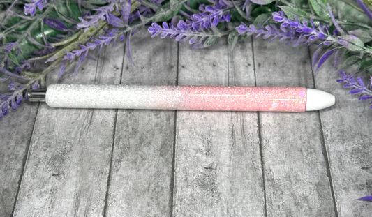 Handmade Ombre Pastel Pink and white glitter pen with free refill