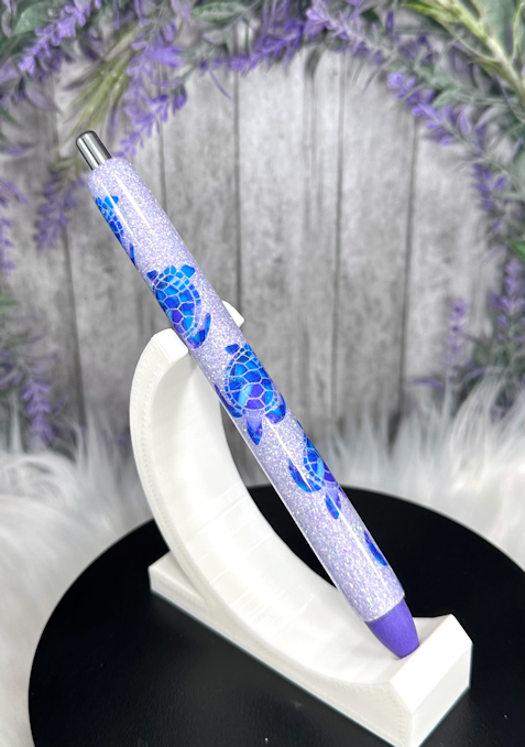 Handmade Sea Turtles on lavender glitter pen with free refill