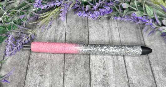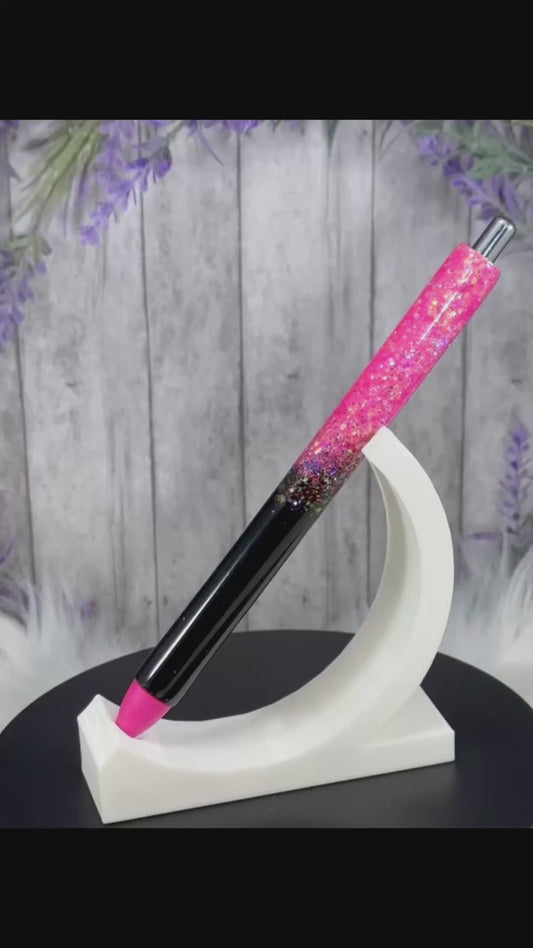 Handmade Ombre Hot Pink and Black glitter pen with free refill