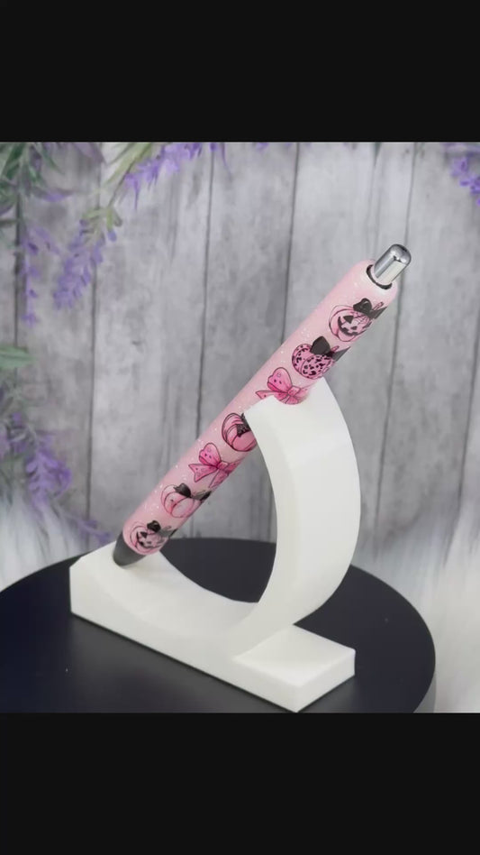 Handmade Halloween Pumpkins on pink glitter pen with free refill