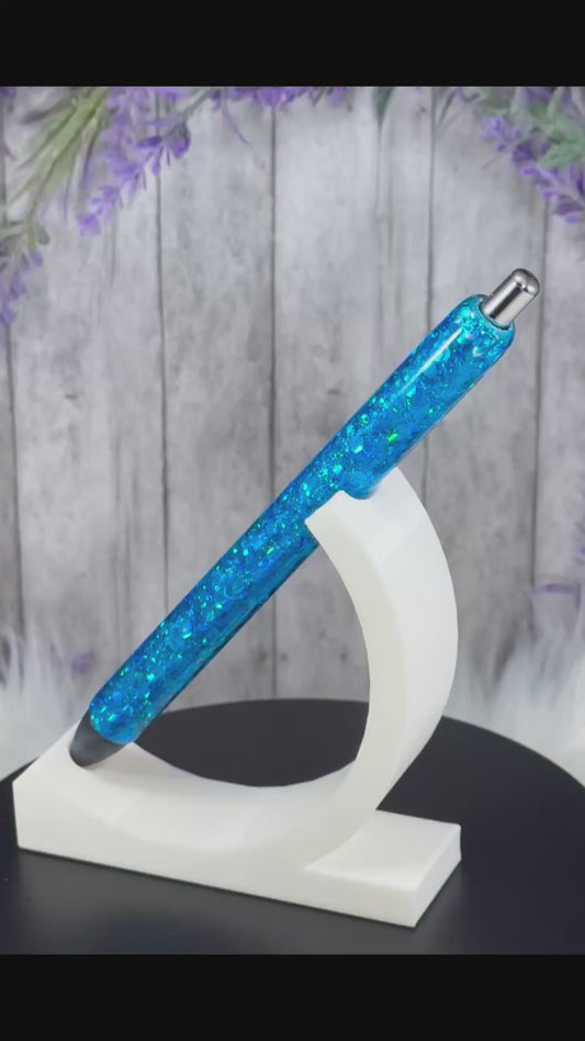 Handmade Ombre Dark Aqua and White glitter pen with free refill