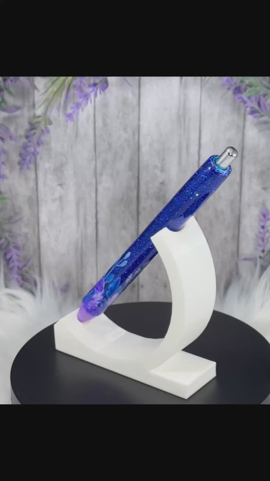 Handmade Lavender Flowers on blue glitter pen with free refill