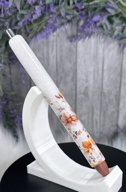 Handmade Brown Flowers glitter pen with free refill