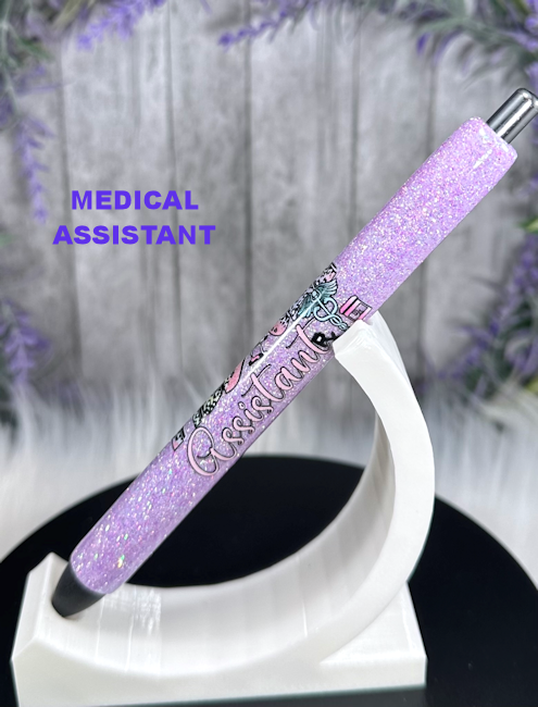 Handmade Medical Assistant on purple glitter pen with free refill