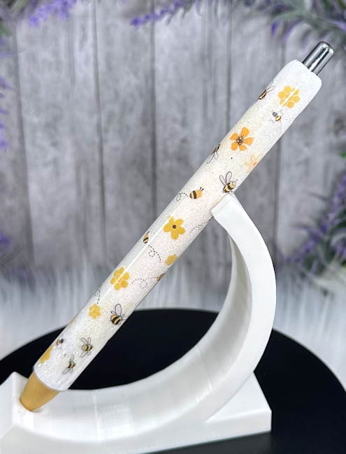 Handmade Miniature Bees and Flowers glitter pen with free refill