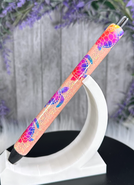 Handmade Sea Turtles on peach glitter pen with free refill