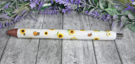 Handmade Miniature Sunflowers and Butterflies glitter pen with free refill