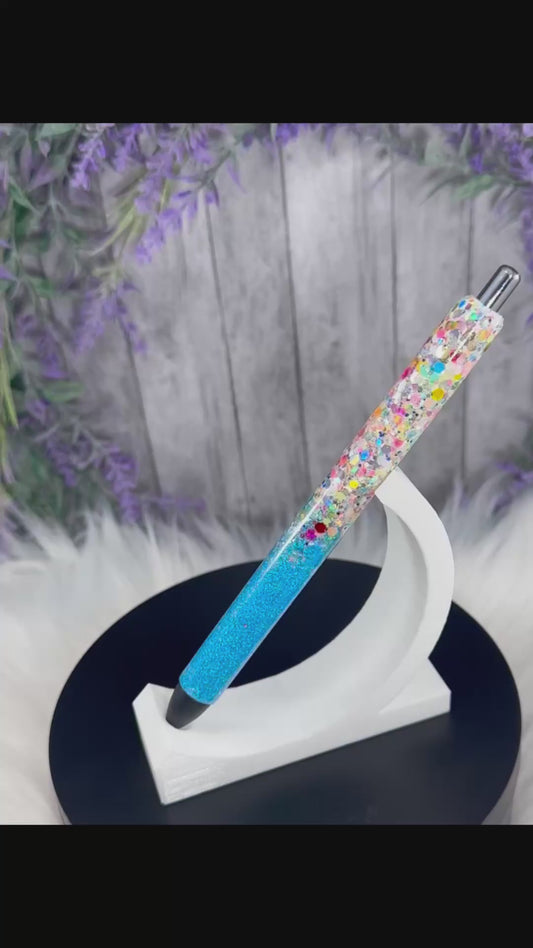 Handmade Neon Blue and Chunky Party mix Ombre glitter pen with free refill