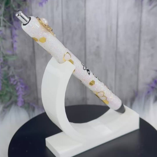 Handmade Bee Kind on opal glitter pen with free refill