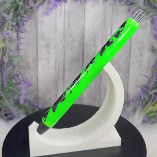 Handmade Bigfoot Sasquatch on green glitter pen with free refill