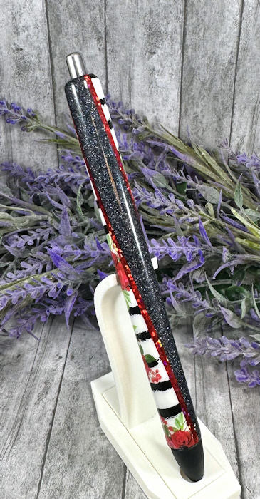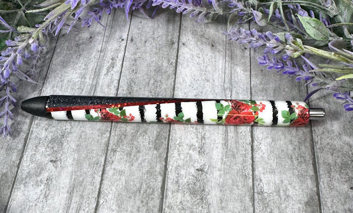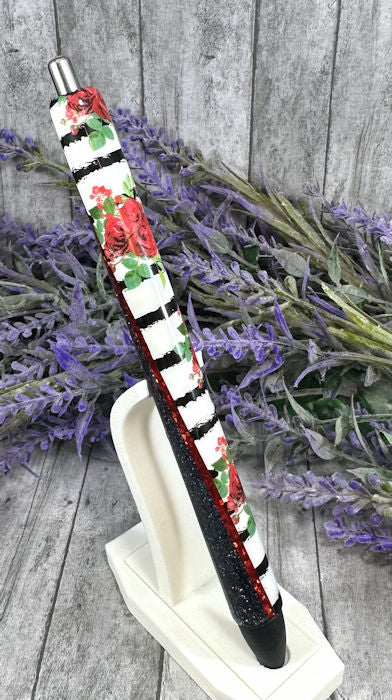 Handmade Black and Red roses Washi Tape glitter pen with free refill