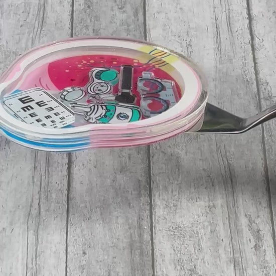Materials used: UV resin, epoxy, glitter, vinyl, industrial glue