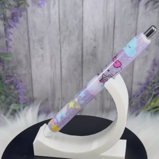 Handmade Hello Kitty Rainbow on purple glitter pen with free refill